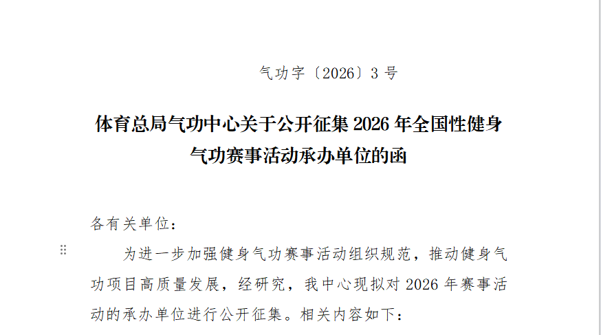 体育总局气功中心关于公开征集2026年全国性健身气功赛事活动承办单位的函