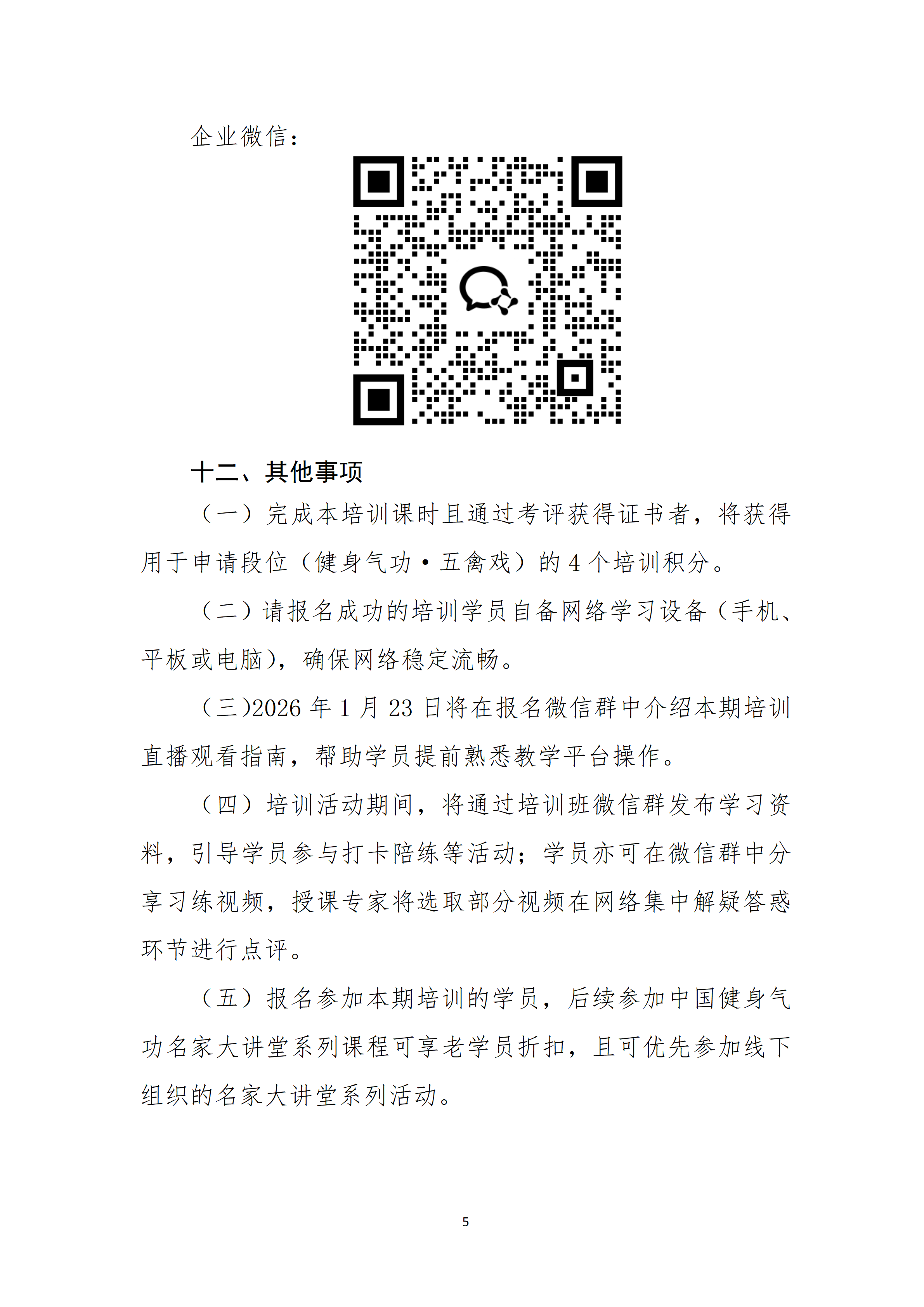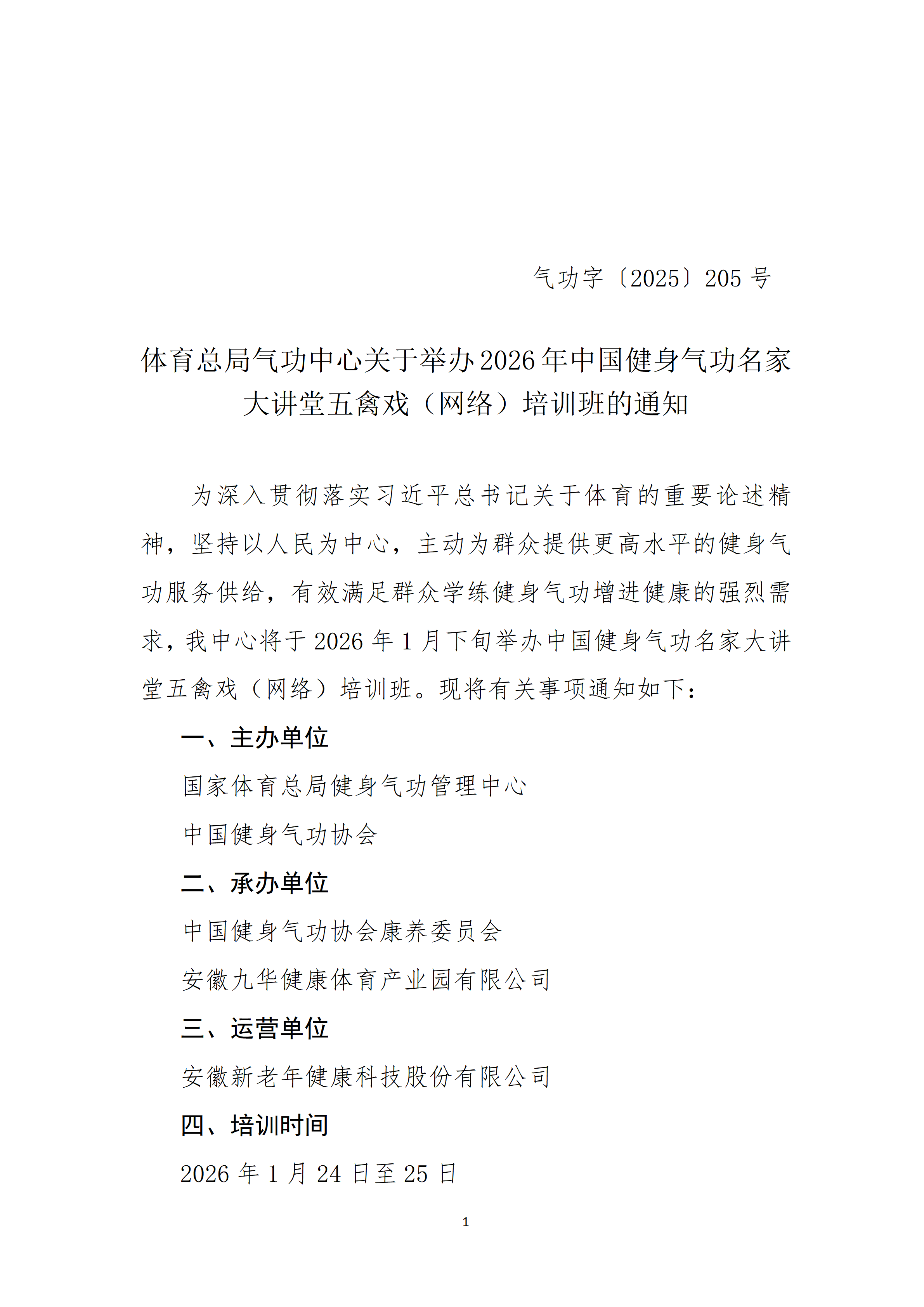 体育总局气功中心关于举办2026年中国健身气功名家大讲堂五禽戏(网络)培训班的通知