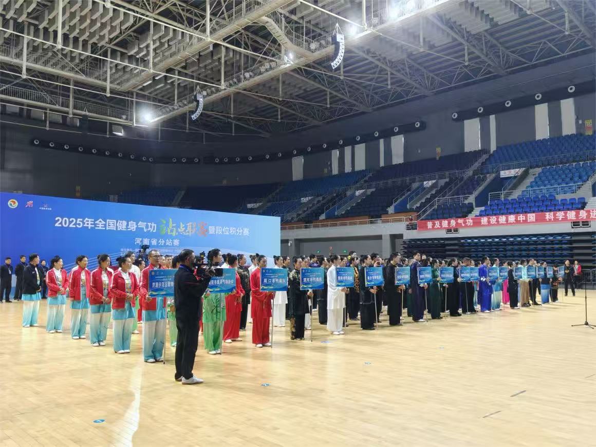 10月14日,当全国目光即将投向广东清远的第十五届全运会群众展演健身气功项目决赛时,厚重的牧野大地——河南新乡,也迎来了一场深具历史意涵的健身气功盛会。2025年全国健身气功站点联赛暨段位积分赛河南省分站赛在新乡市平原(建业)体育中心开幕,比赛由国家体育总局健身气功管理中心和中国健身气功协会指导,河南省全民健身中心、新乡市体育局、新乡市体育总会主办,新乡市健身气功协会承办。来自全省的17支代表队共164人在健身气功·易筋经、五禽戏、八段锦、马王堆导引术、导引养生功十二法和太极养生杖6个项目上,激烈竞技,友好交流。