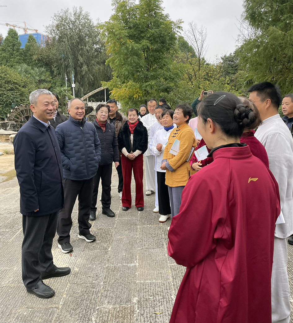 一枝一叶总关情。研修期间,田志宏到基层站点开展实地调研,认真观摩站点群众习练功法,详细询问群众在日常练习、参加活动中存在的急难愁盼等问题,并悉心听取他们的意见和建议。