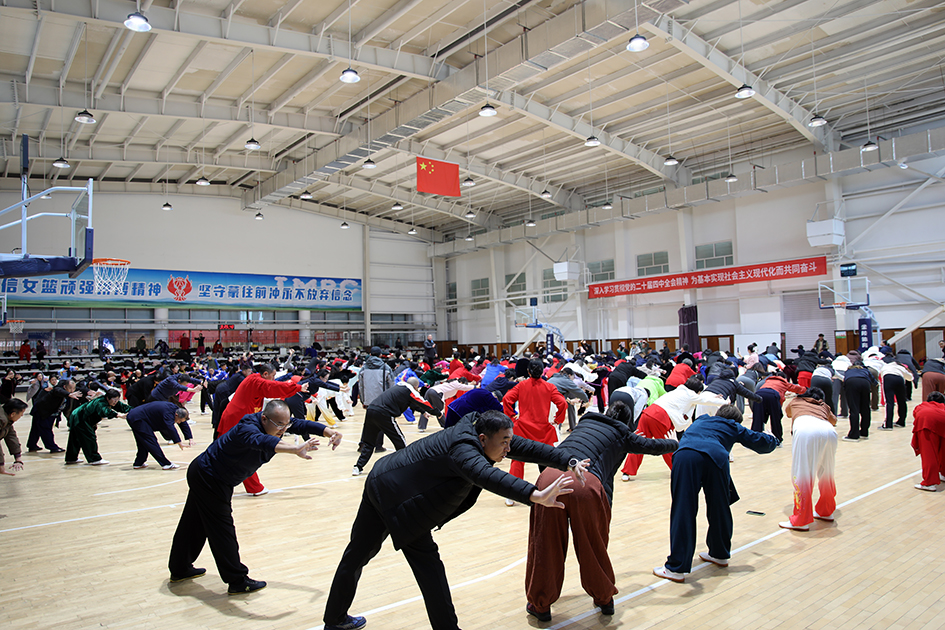 来自全区各地的500余名基层健身气功推广骨干齐聚一堂,共同传递科学健身理念,播撒健康生活种子。展演现场,健身气功爱好者们身着统一练功服,动作整齐划一、柔缓有力,依次展示了八段锦、易筋经、五禽戏等传统功法。一招一式,彰显出传统体育的生命力与感染力。
