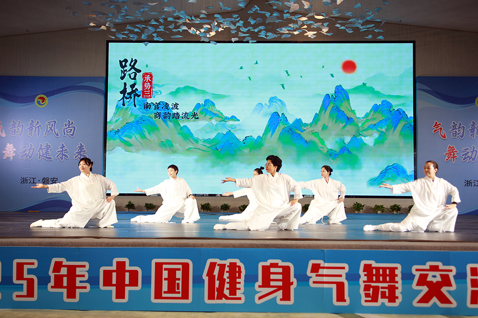 2025年中国首届健身气舞交流展演大会12月5日在浙江磐安隆重拉开帷幕。来自全国600余名健身气舞爱好者们,共赴一场集健身养生和艺术享受于一体的情感“嘉年华”。专家们以“形之引,气之和神之凝,舞之韵,心之境”为标准,悉心心为全国90多只参加展演的队伍点评。盛况空前。