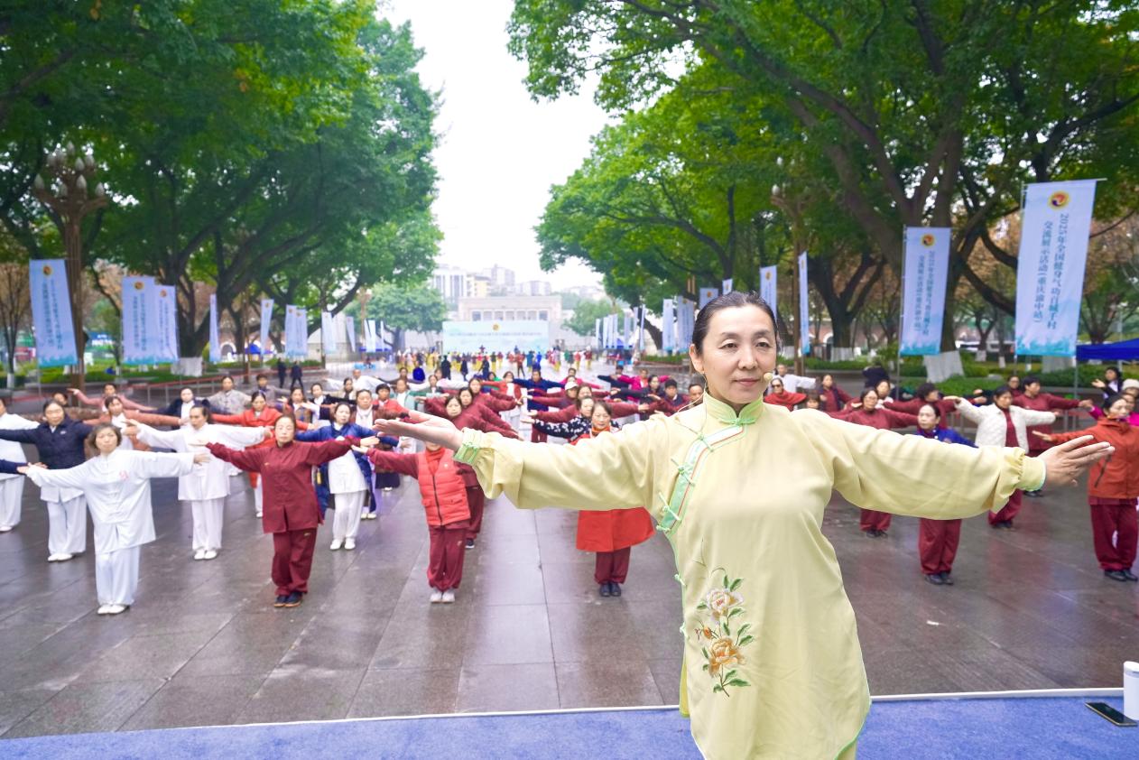 活动聚焦惠民服务,精心设置了八段锦交流展示、"送健康、惠民生"功法教学、名家讲坛三大核心环节,亮点突出。健身气功爱好者整齐划一演练八段锦。一招一式舒展圆活,成为广场上一道亮眼的风景线。