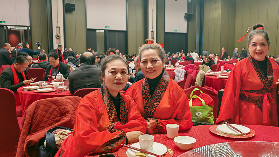 古韵新姿,震撼全场。演员们一袭赤红的汉服交相辉映。随着民族风音乐声起,演员们以气驭形,将传统健身功法的刚柔并济与古典舞蹈的飘逸灵动融为一体。广袖舒展间,既有传统健身气功的沉稳连绵,又不失舞蹈的韵律美感。整齐划一的动作、大气磅礴的阵容,将健身气舞《青》所蕴含的蓬勃生命力与唐风汉舞的古典韵味展现得淋漓尽致。它让古老的养生功法,化作灵动的舞蹈诗篇;让东方的沉静之美,在当代舞台上灼灼生辉。