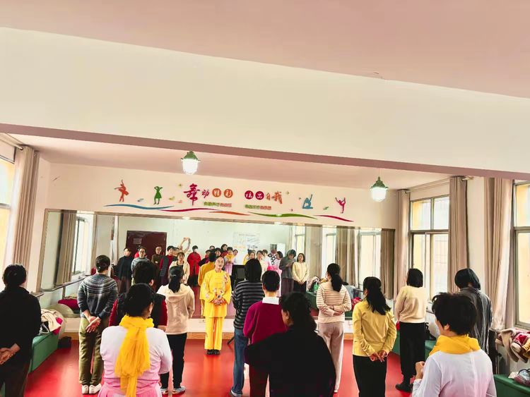 在温馨的氛围中,余老师正式上课。她以春雨润泽万物为喻,将气舞《青》中“生机与活力”的内涵娓娓道来。教学中,她细致地拆解动作要领,从呼吸吐纳到肢体舒展,以身示范,带领学员们感受身心合一的和谐之美。有的新学员从来没有接触过健身气功和舞蹈,余老师手把手地指导,直到他们领悟。