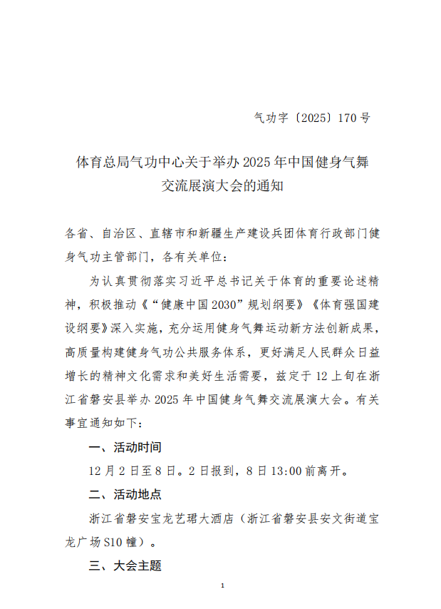 体育总局气功中心关于举办2025年中国健身气舞 交流展演大会的通知