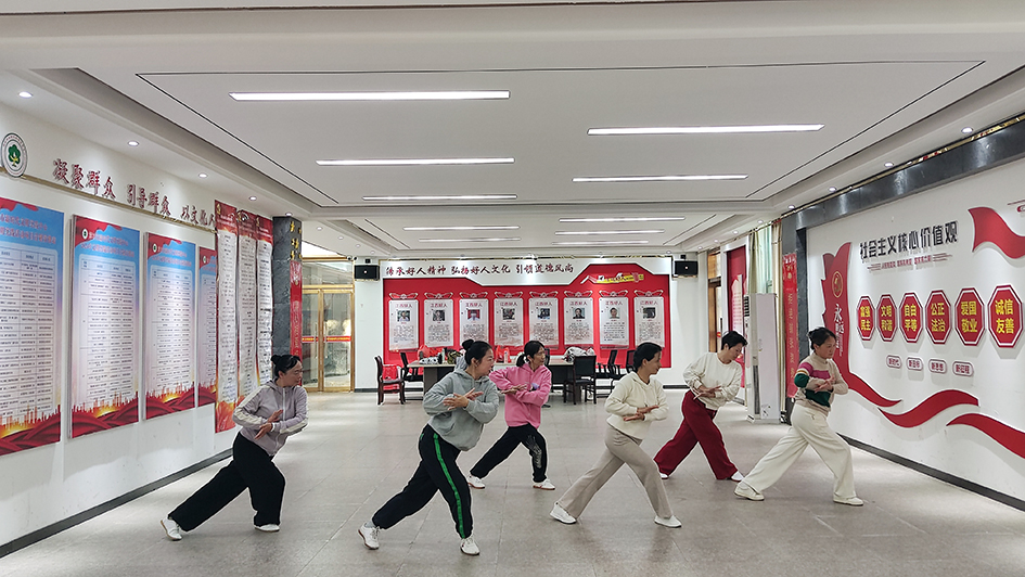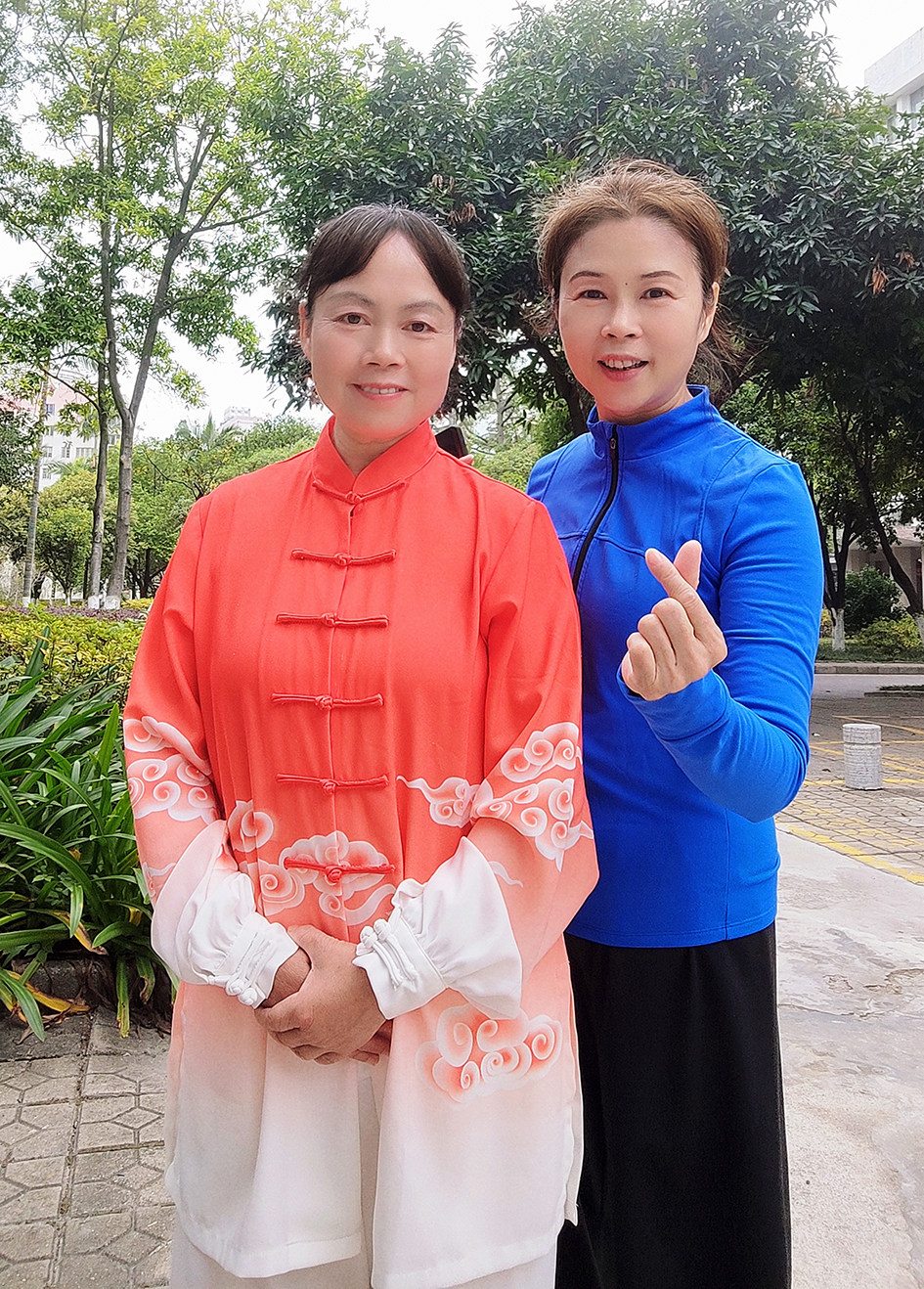 此时我还不知道远在千里之外的邓毅君老师也参加了此次征集,她的作品《故园追梦》遗憾落榜,可是出于对健身气舞的执著与热爱,和为了帮助素不相识的我圆梦,一口答应了此事。这份不计得失的格局与境界,深深震撼了我。更让我动容的是,为了精准把握作品要义,邓老师不远千里专程从江西樟树奔赴广西柳州,来到我的身边。“风拂柳绿,香伴樟青”,刚一见面,我们顾不上寒暄,便立刻投入到作品打磨中。面对面拆解动作设计、阐释核心主旨、探讨健身原理,一同优化动作细节、敲定服装风格与队形编排,最终明确了“一文一武”的分工。