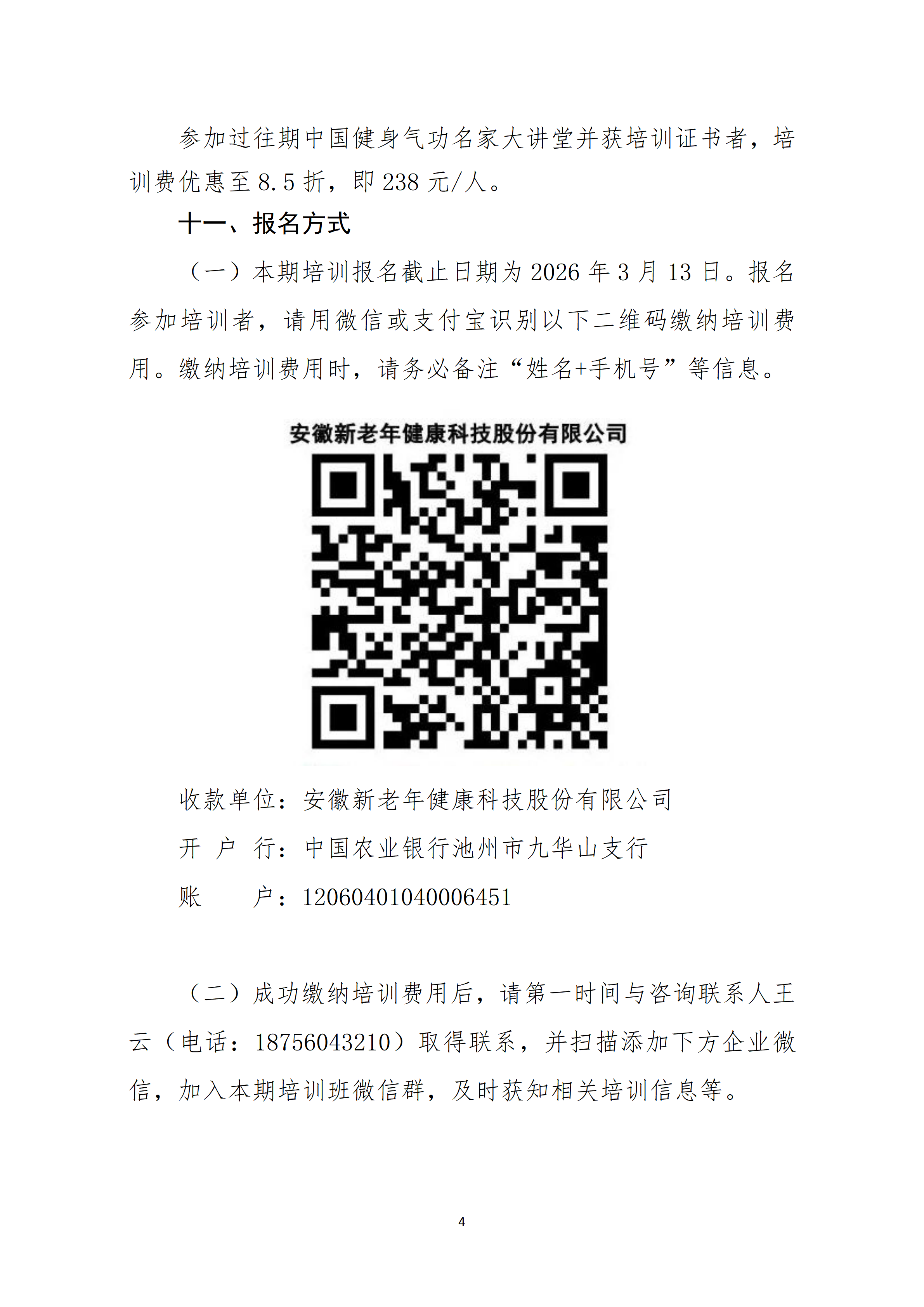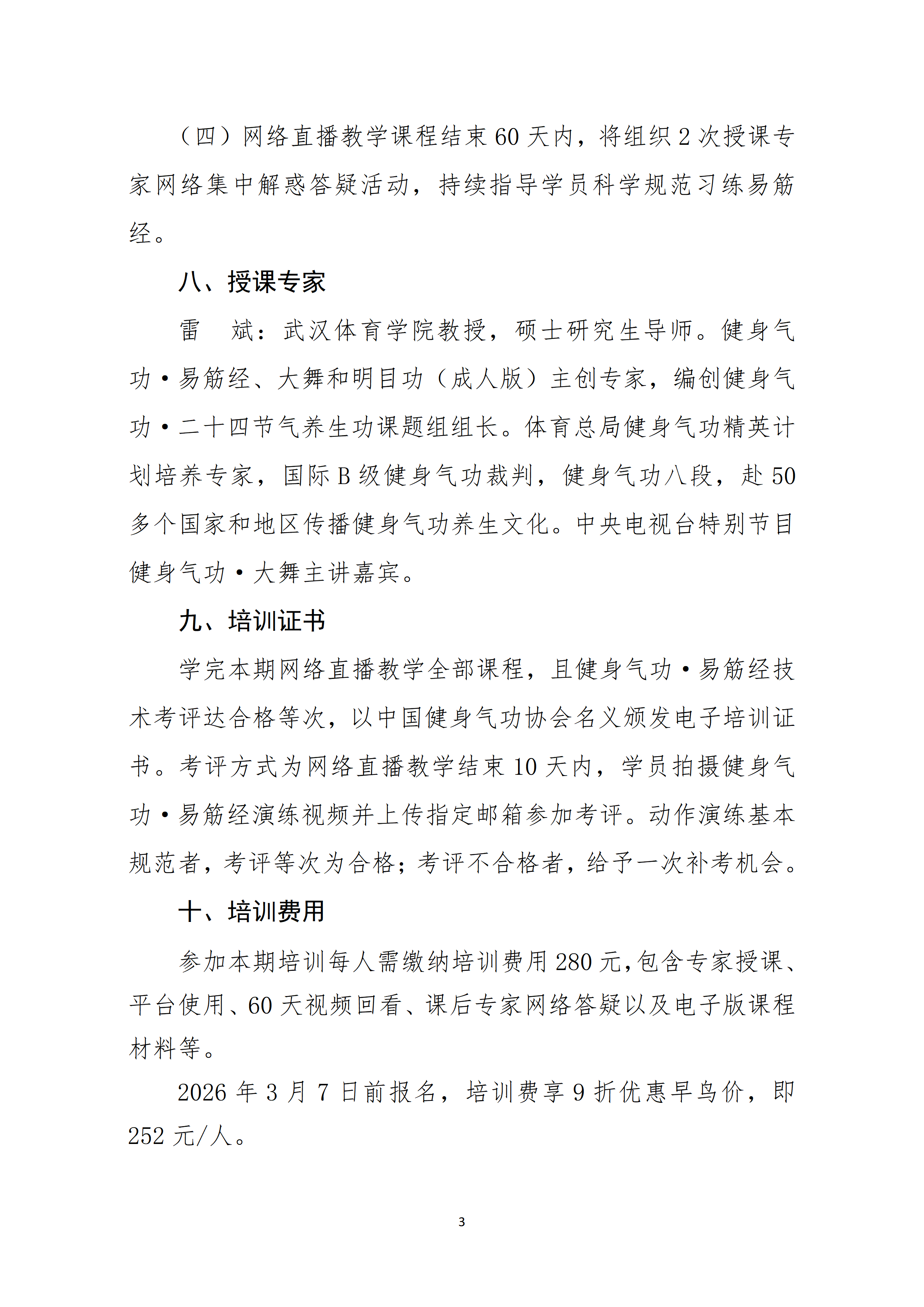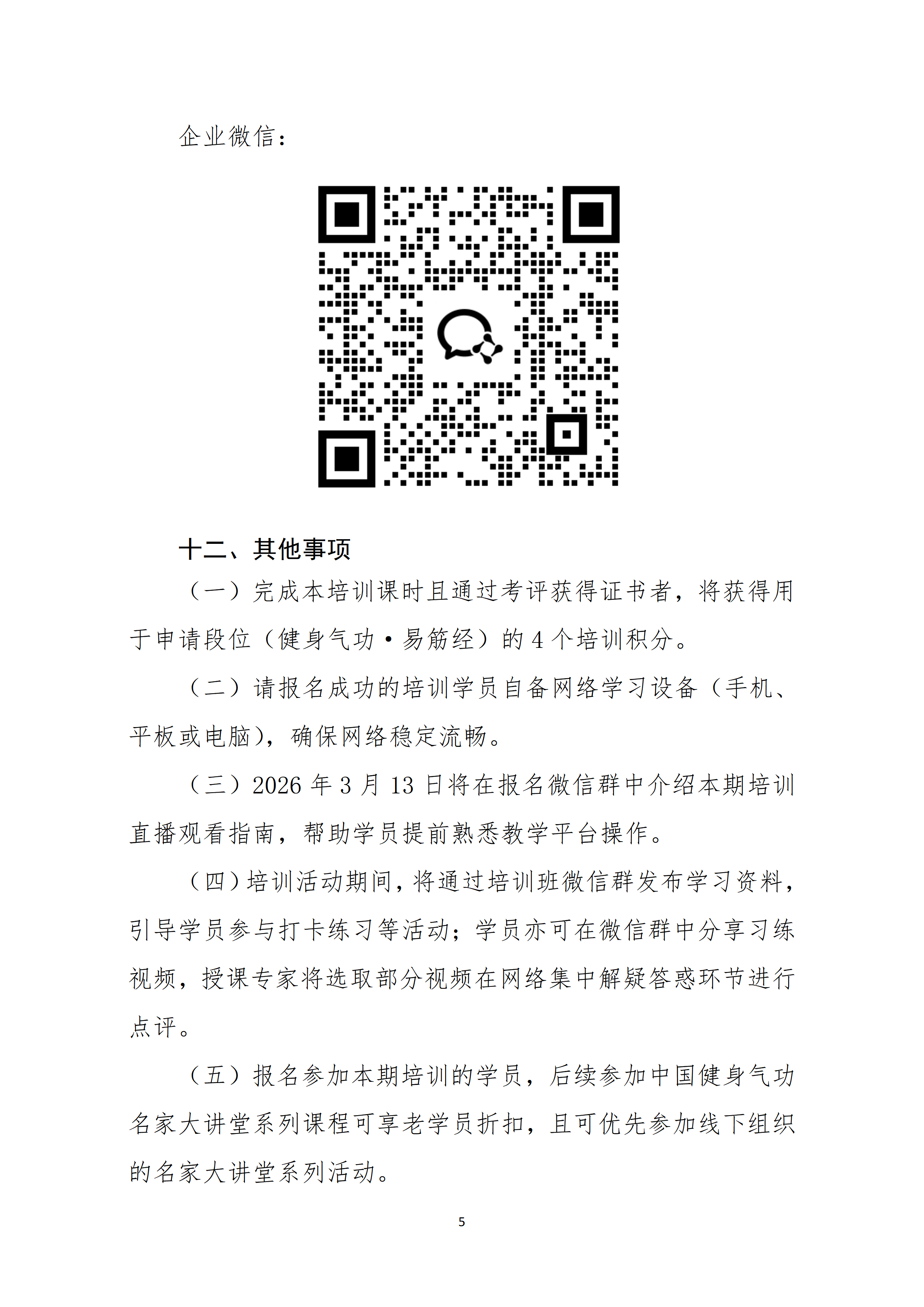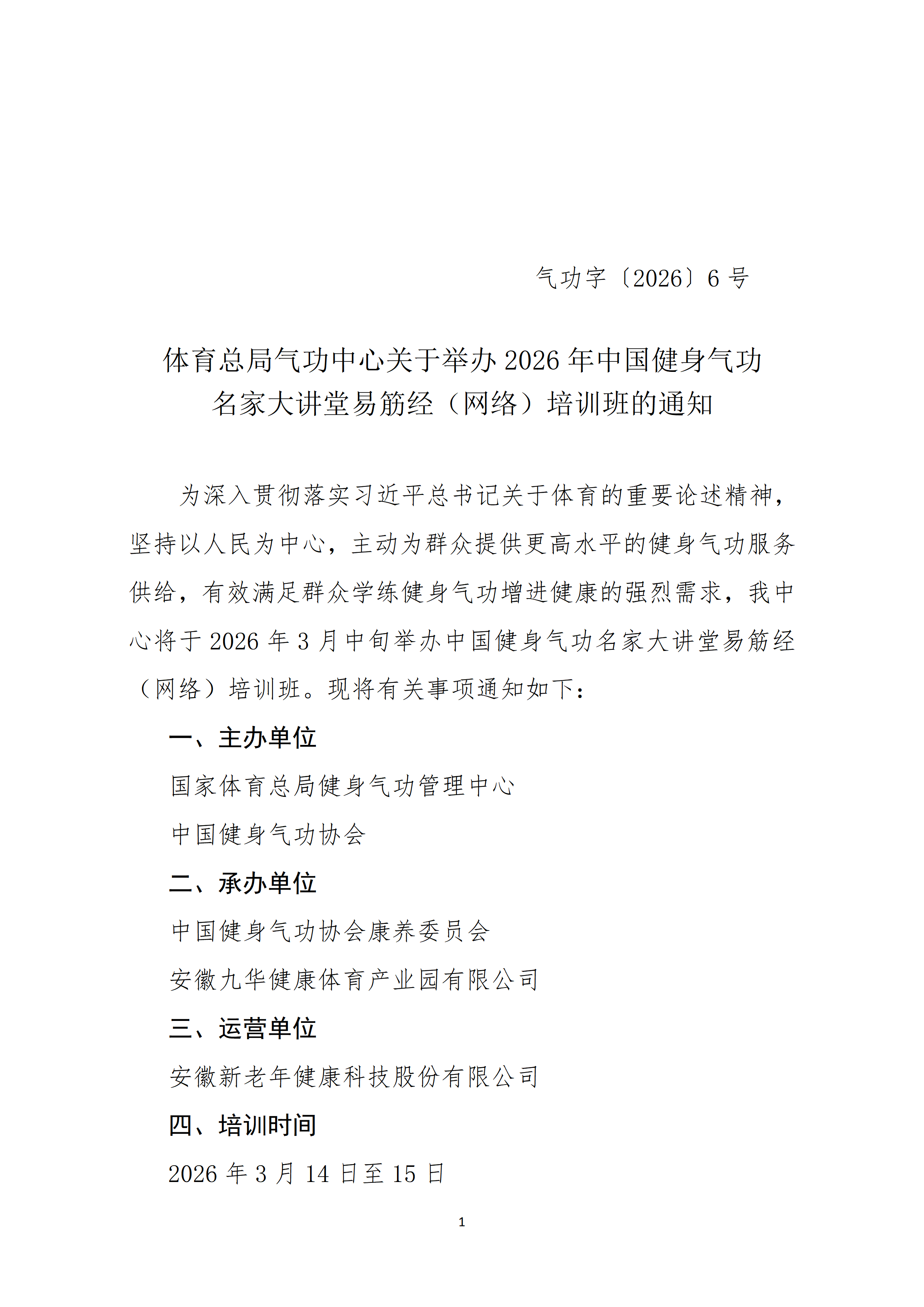 体育总局气功中心关于举办2026年中国健身气功 名家大讲堂易筋经(网络)培训班的通知
