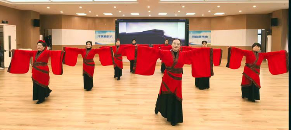 江城社区气舞班的健身气舞《青》精彩亮相活动现场。《青》动作舒展流畅、刚柔相济,将健身气功的养生精髓与古典舞韵律完美融合,队员们身着红色汉服,古朴大气、身姿优雅、气韵悠长,充分展现出朝气蓬勃、向上向善的精神风貌,让观众眼前一亮,给武术展演增添了一道靓丽风景,赢得了观众阵阵掌声。