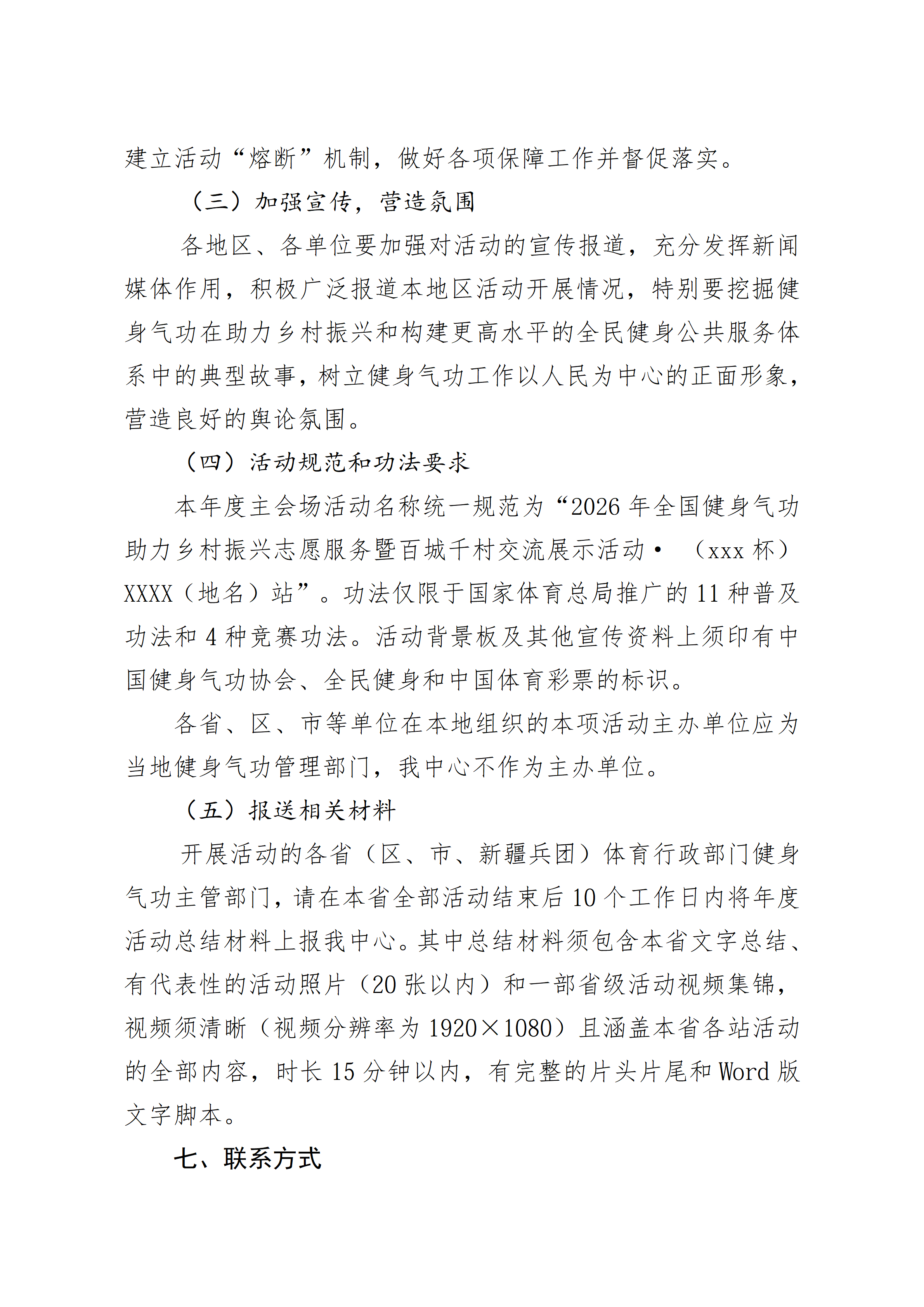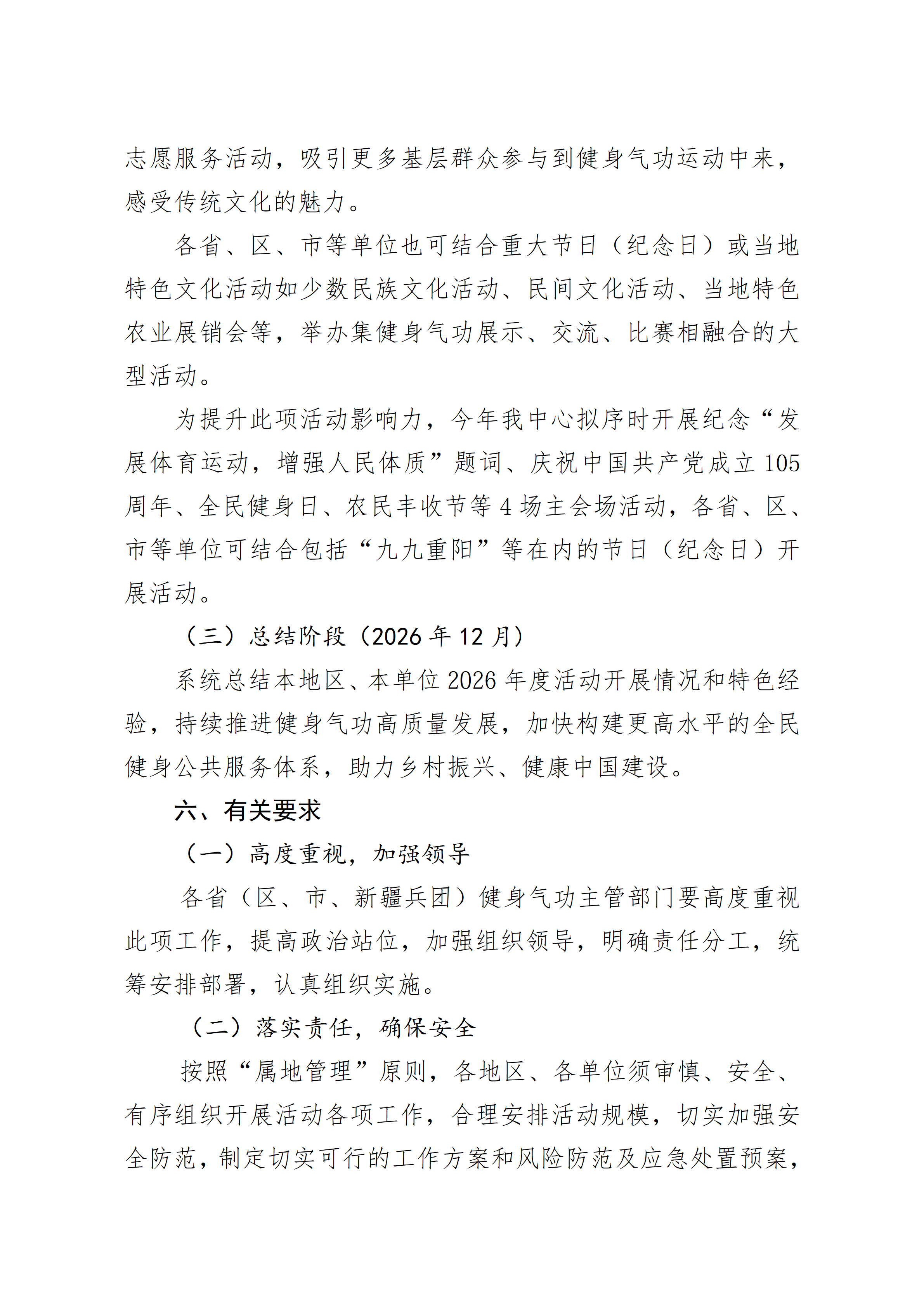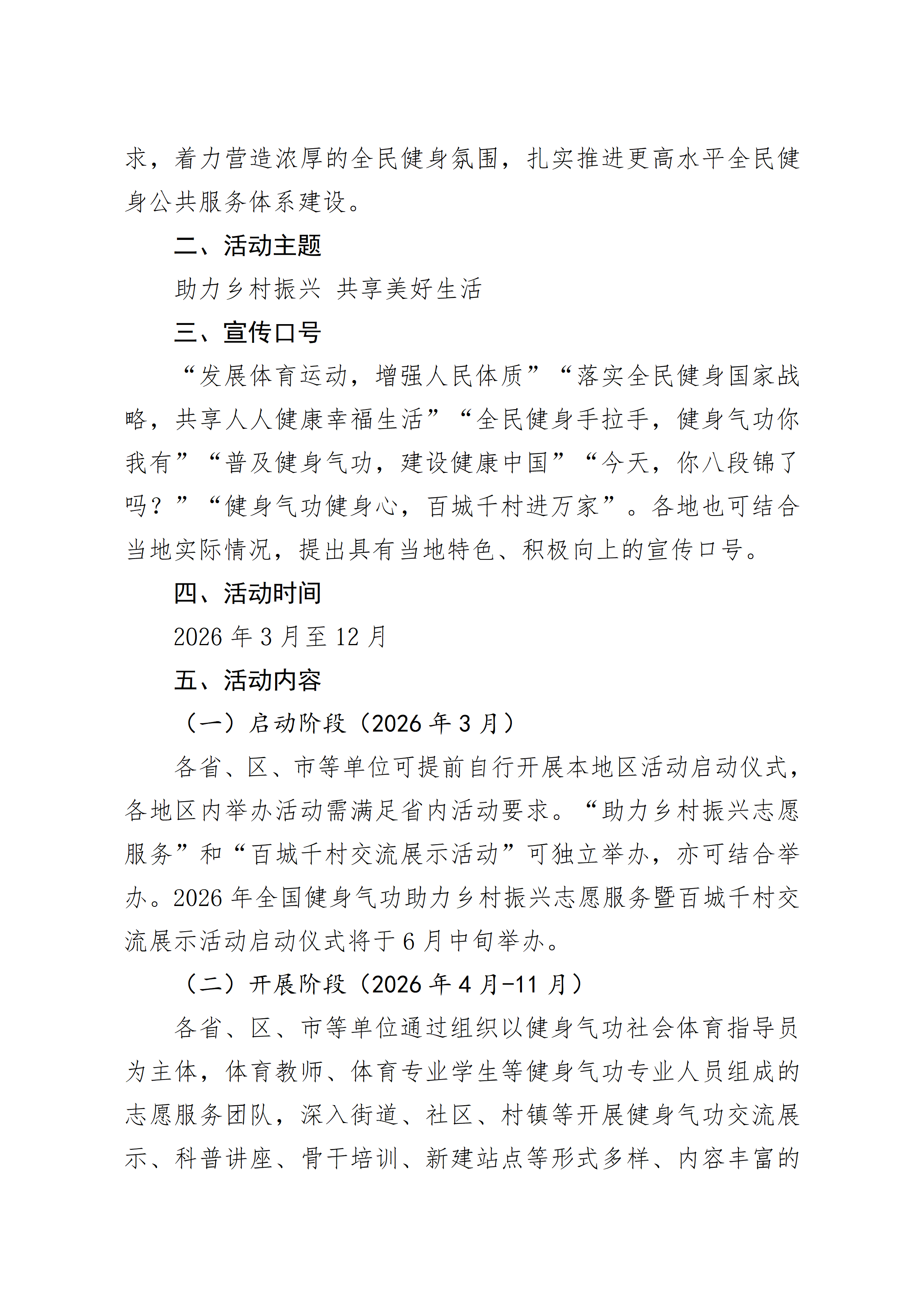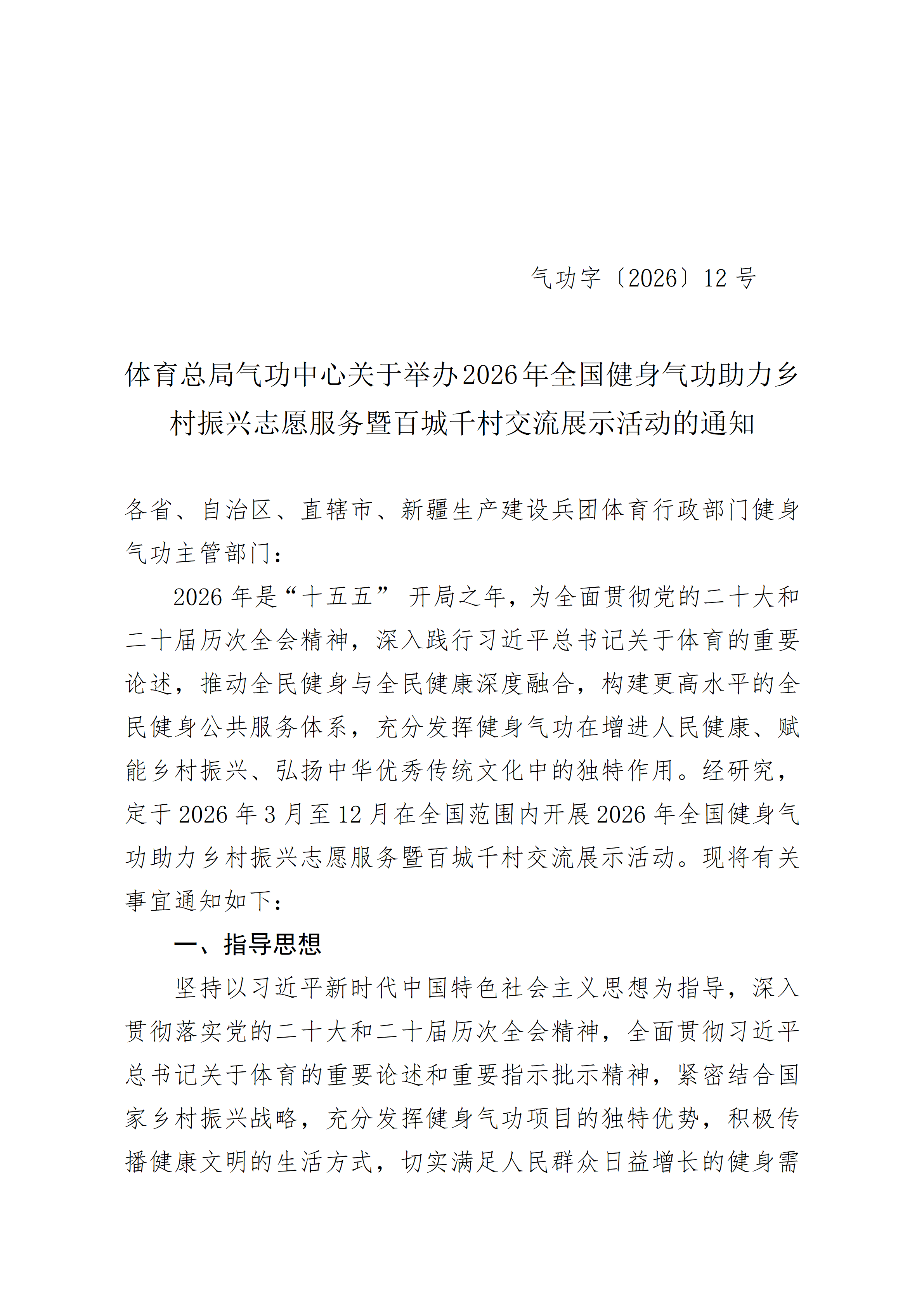 体育总局气功中心关于举办2026年全国健身气功助力乡村振兴志愿服务暨百城千村交流展示活动的通知