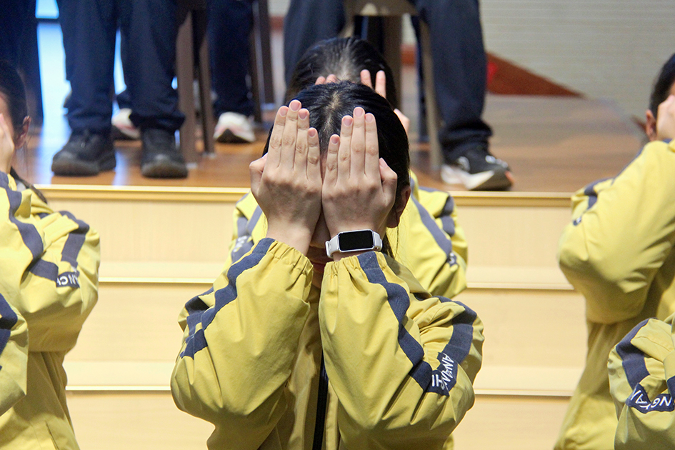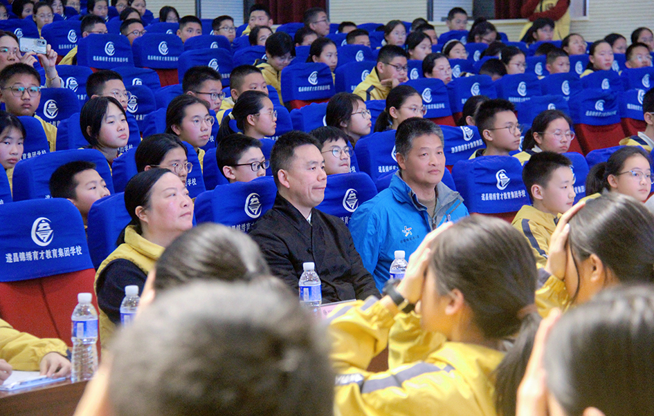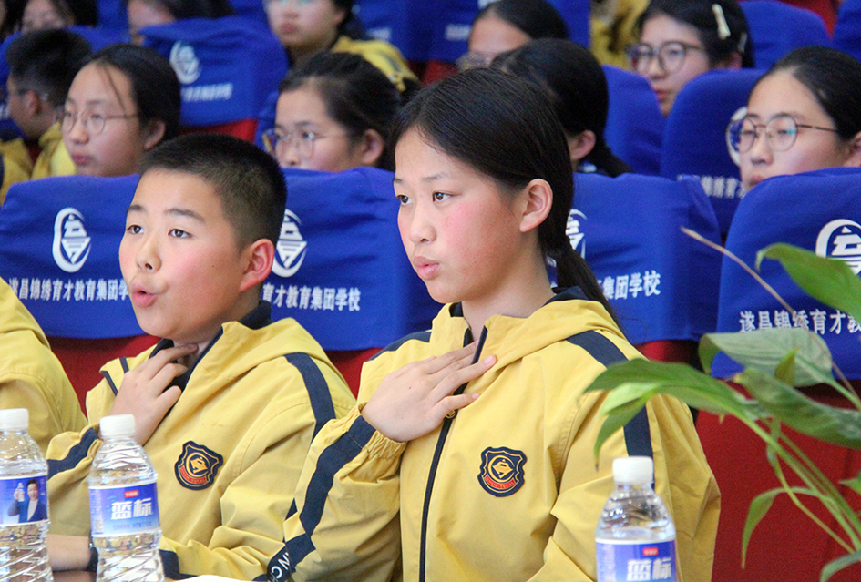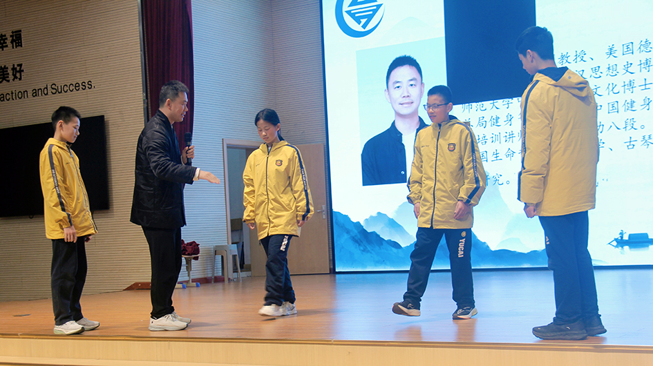 “健身气功·明目功(青少版)预备势:正身端坐,双目微闭……”3月11日晚,浙江遂昌锦绣育才教育集团学校报告厅内,七年级全体师生齐聚一堂,一场别开生面的健身气功明目功护眼PK赛激情启幕。丽水学院副教授,《健身气功·明目功(青少版)》教材编撰专家晁胜杰受邀担任顾问,为赛事进行专业指导与点评。