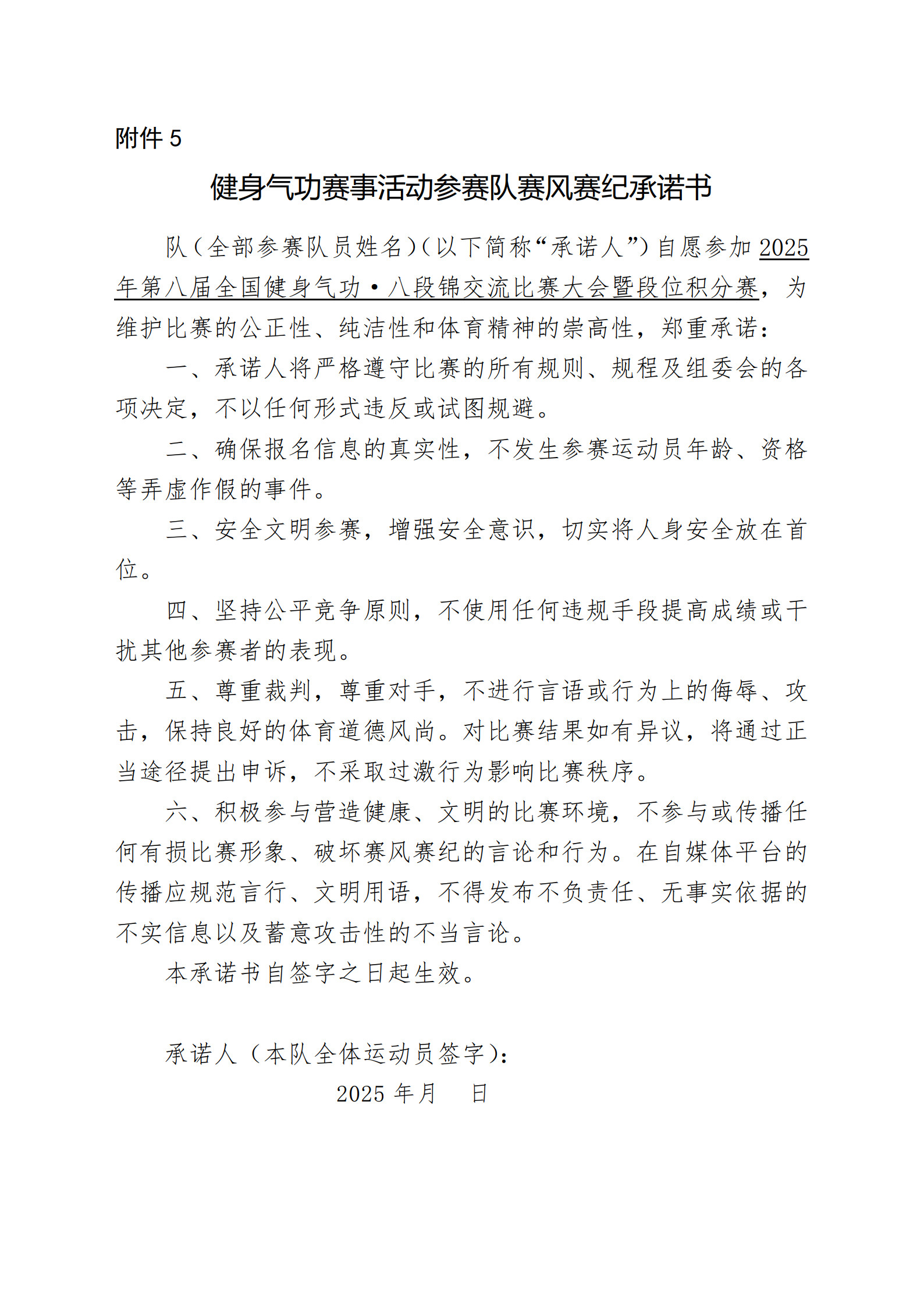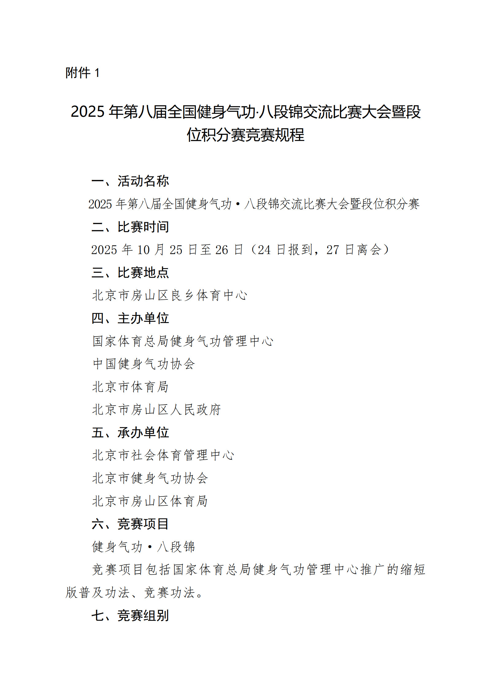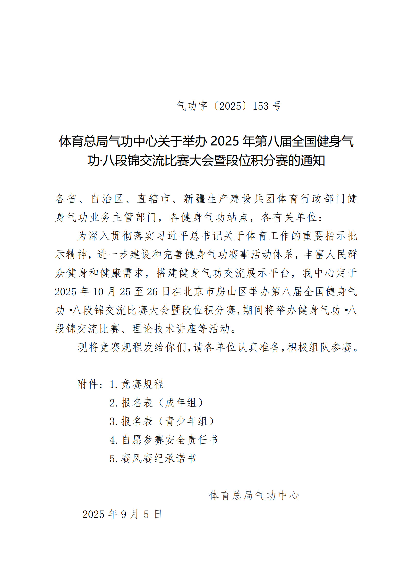 体育总局气功中心关于举办 2025 年第八届全国健身气功·八段锦交流比赛大会暨段位积分赛的通知