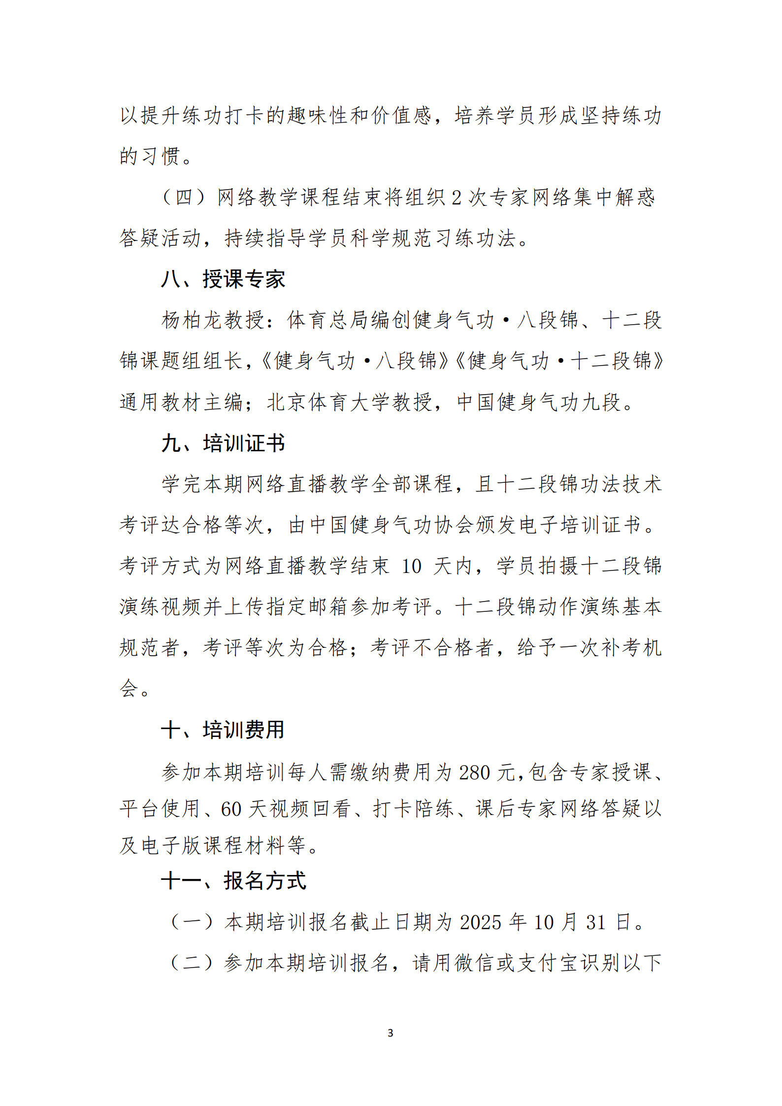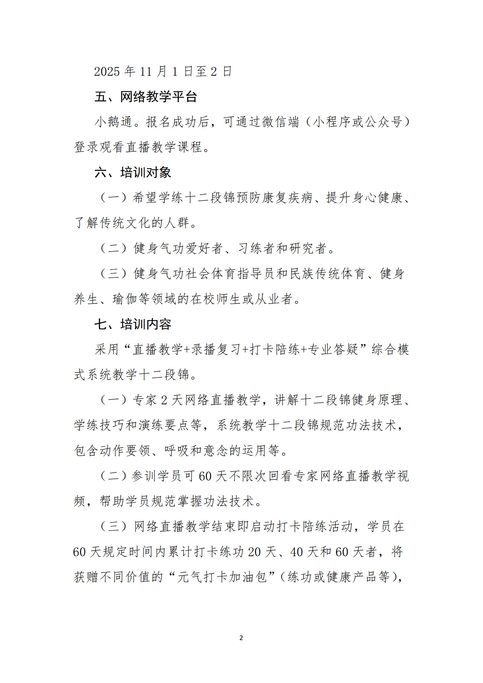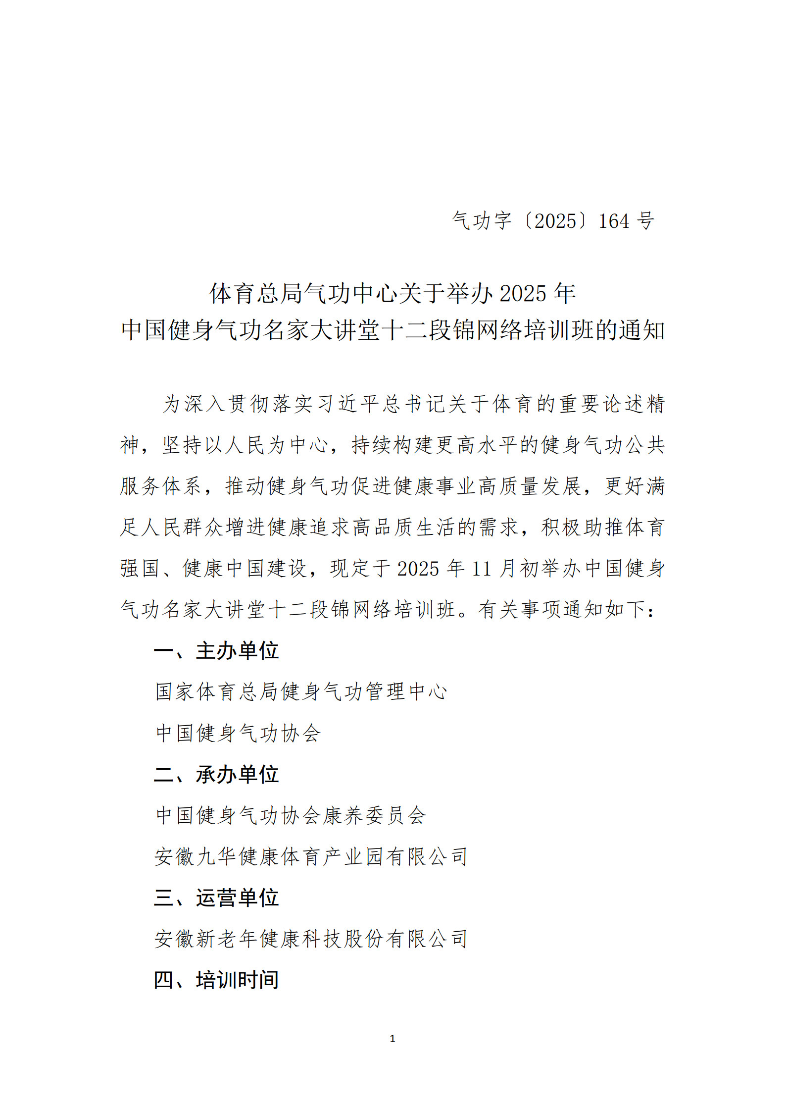 体育总局气功中心关于举办2025年 中国健身气功名家大讲堂十二段锦网络培训班的通知