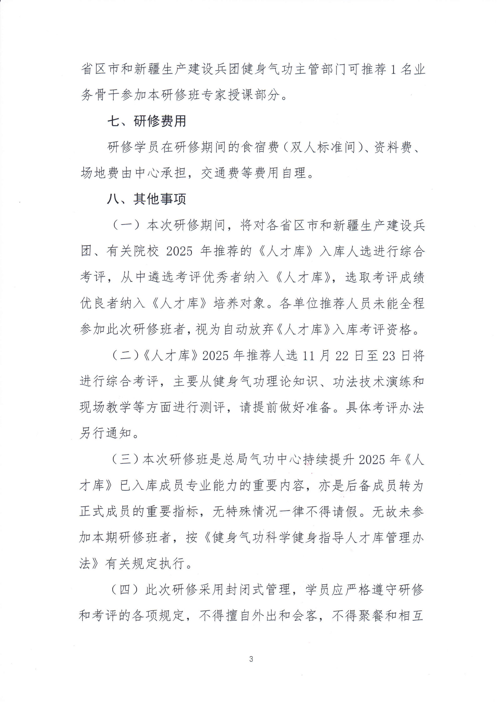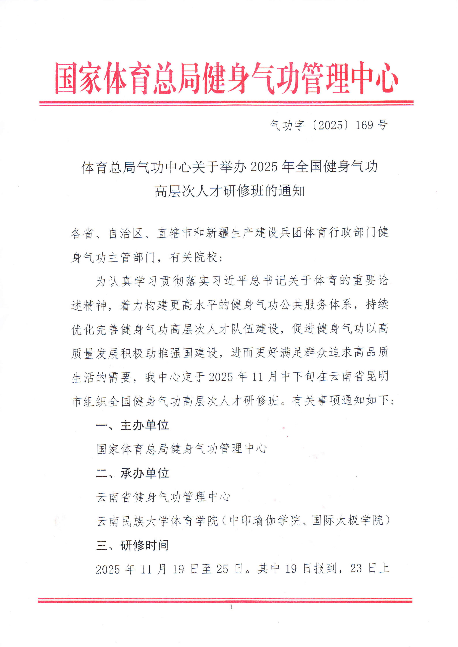 体育总局气功中心关于举办2025年全国健身气功高层次人才研修班的通知