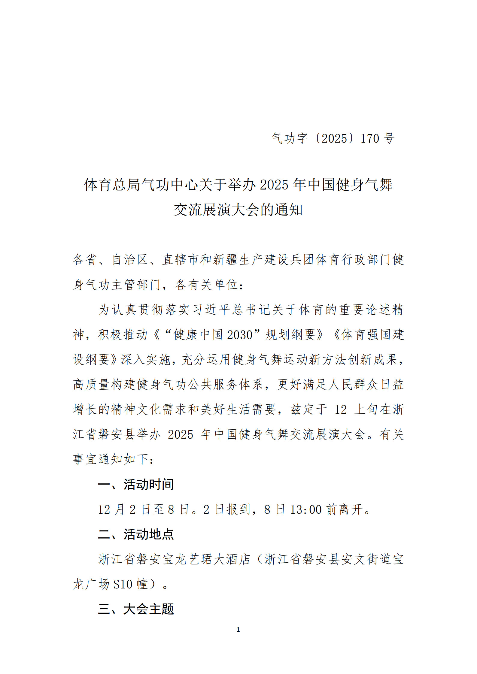 体育总局气功中心关于举办2025年中国健身气舞 交流展演大会的通知