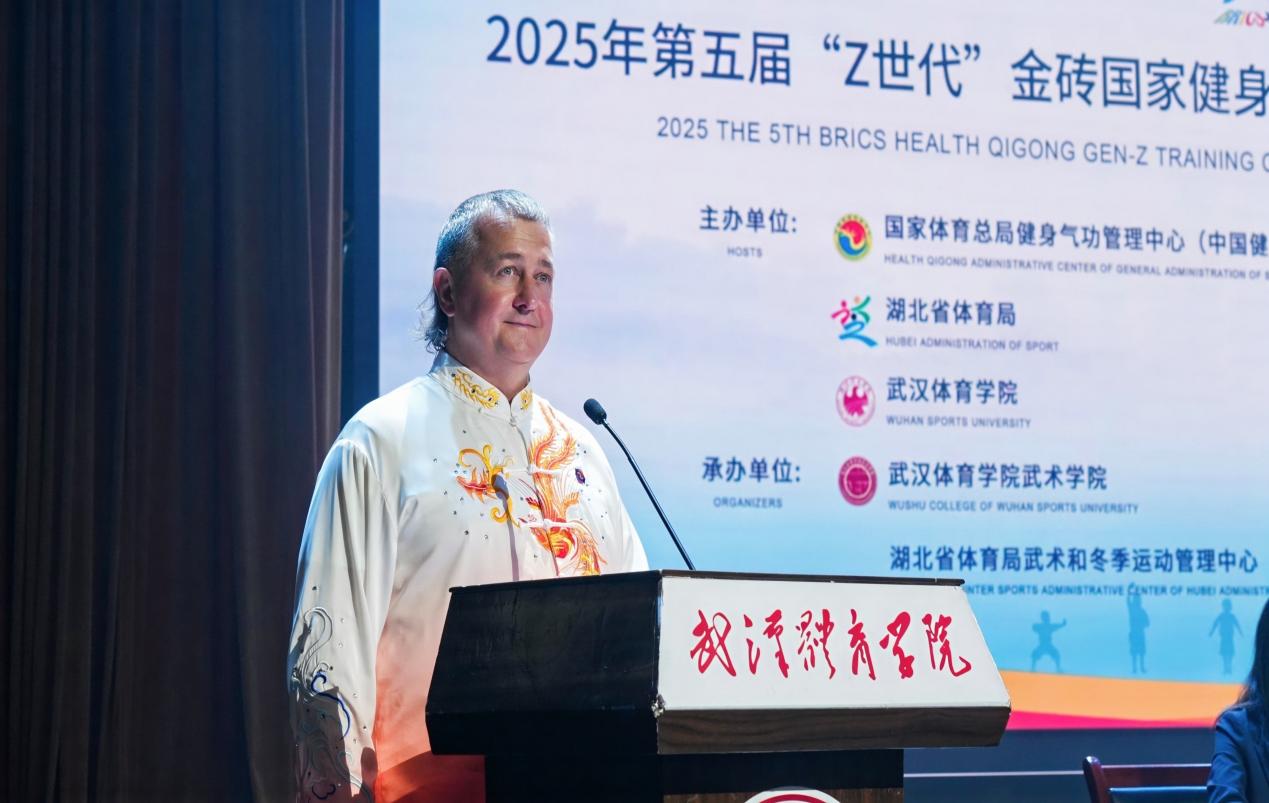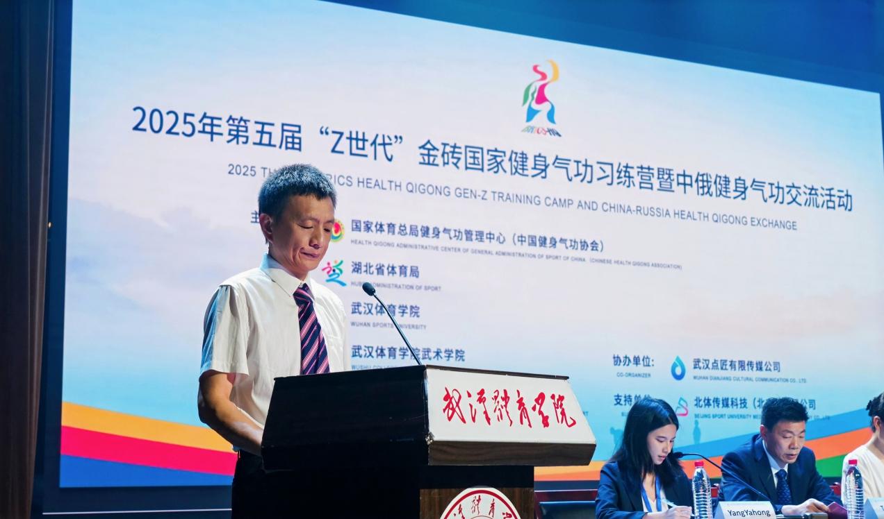 开幕式上,国家体育总局健身气功管理中心副主任陈学兵发表致辞。他高度肯定了武汉体育学院为活动筹备付出的努力。陈主任强调,健身气功是促进全民健康的重要运动,也是连接金砖国家友谊的文化纽带。他希望学员们能以此次活动为契机,深入交流、共同进步,成为健身气功的推广者和金砖国家友谊的传承者。