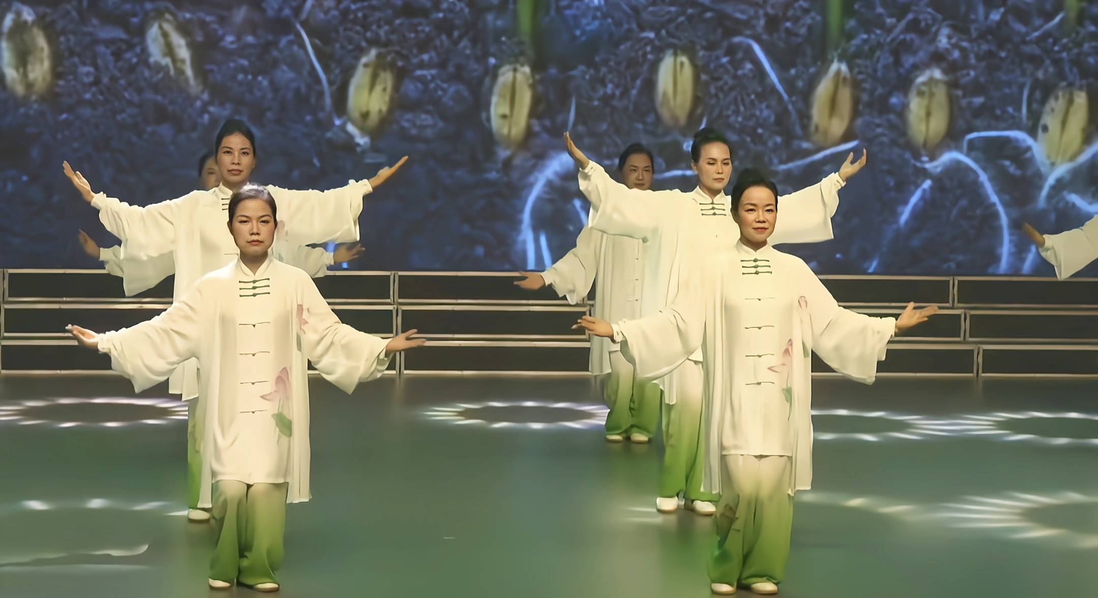 参演的队员虽都年过半百,但他们在舞台上步履沉稳,动作行云流水,气息沉稳内敛,充分展现了长期习练健身气功所带来的身心康健、神采奕奕的良好状态,成为“体育健身与文化艺术融合”的生动典范。