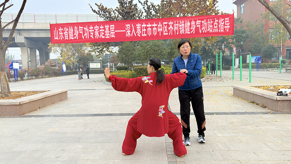 山东省健身气功专家走基层——来到枣庄市齐村镇健身站点传授技艺